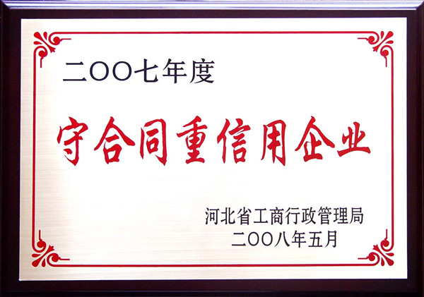 省級(jí)榮譽(yù)——重合同守信用企業(yè)