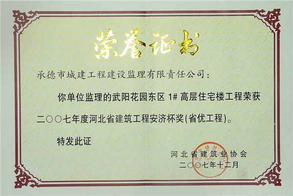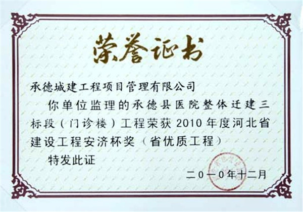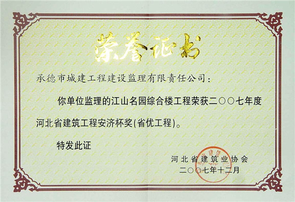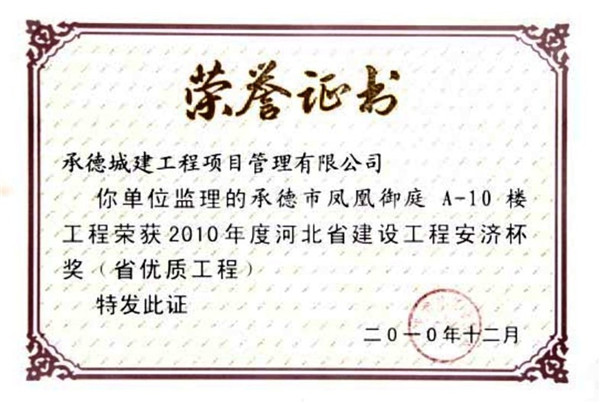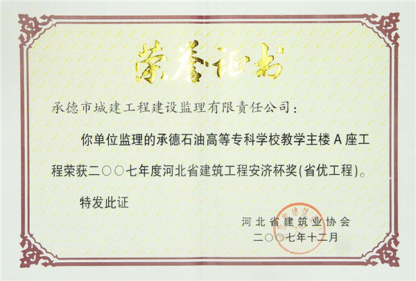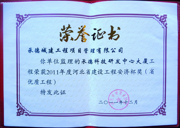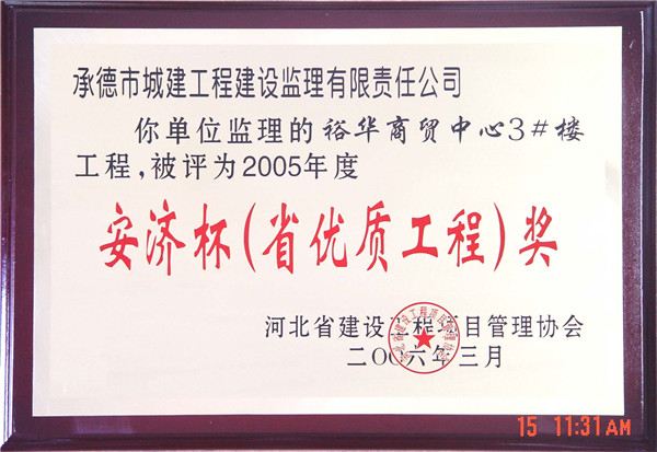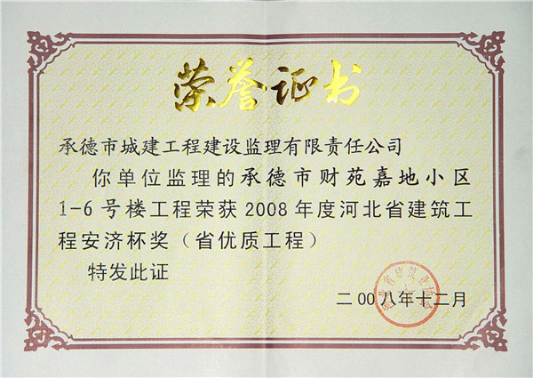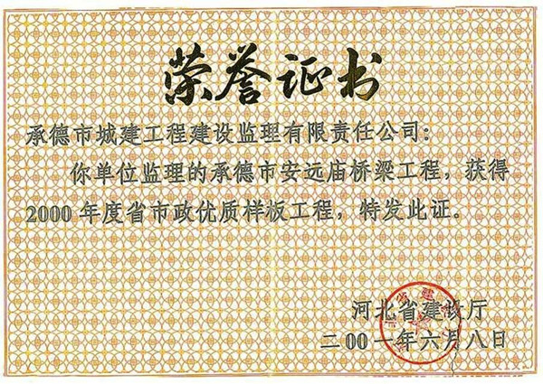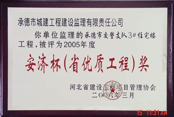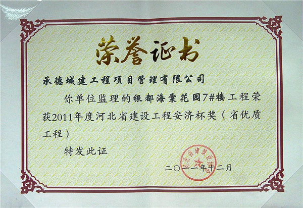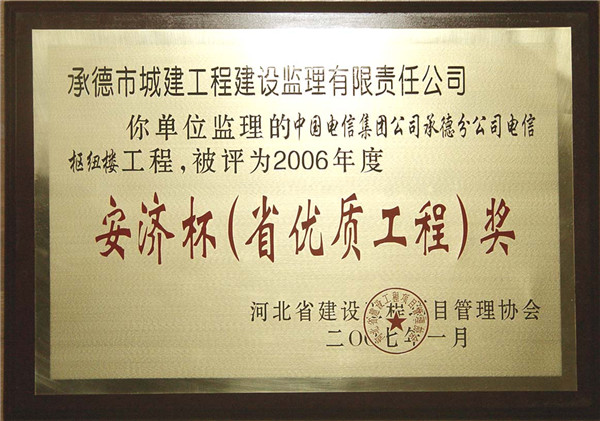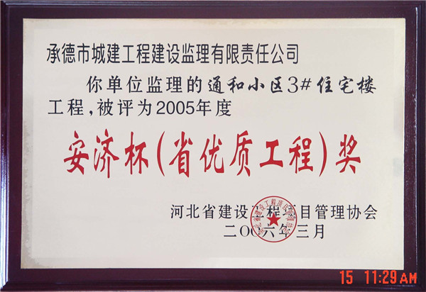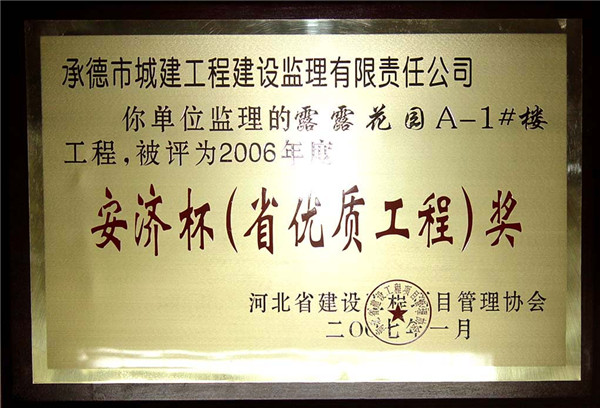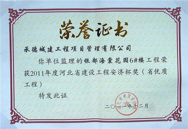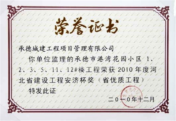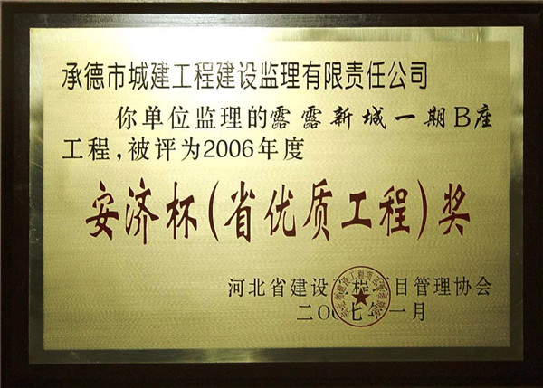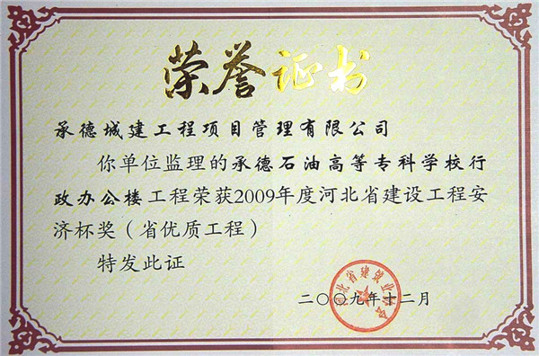 省級(jí)榮譽(yù)——優(yōu)質(zhì)工程
