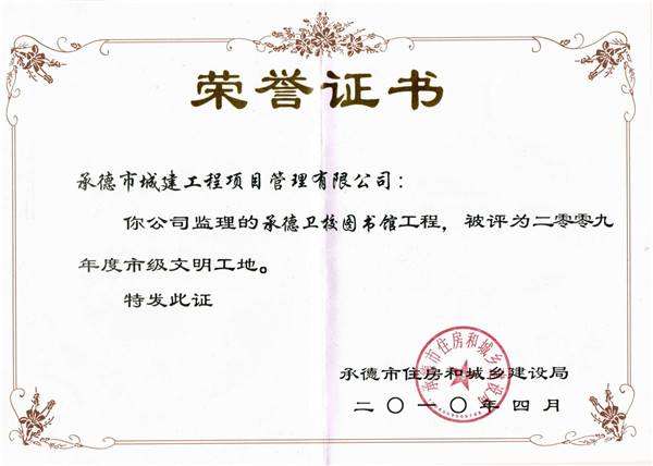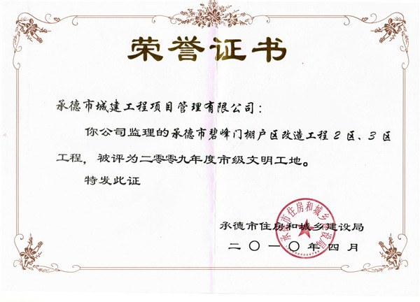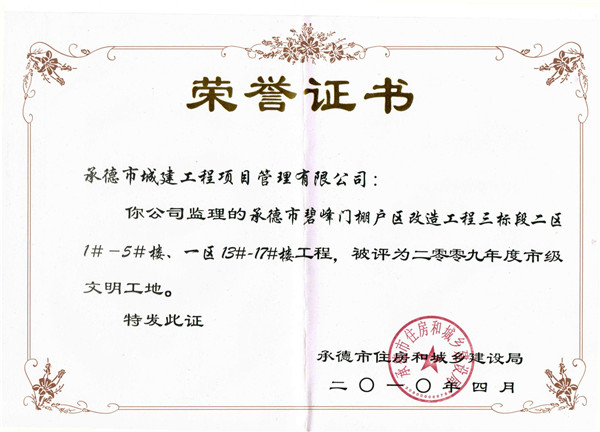 市級(jí)榮譽(yù)——文明工地